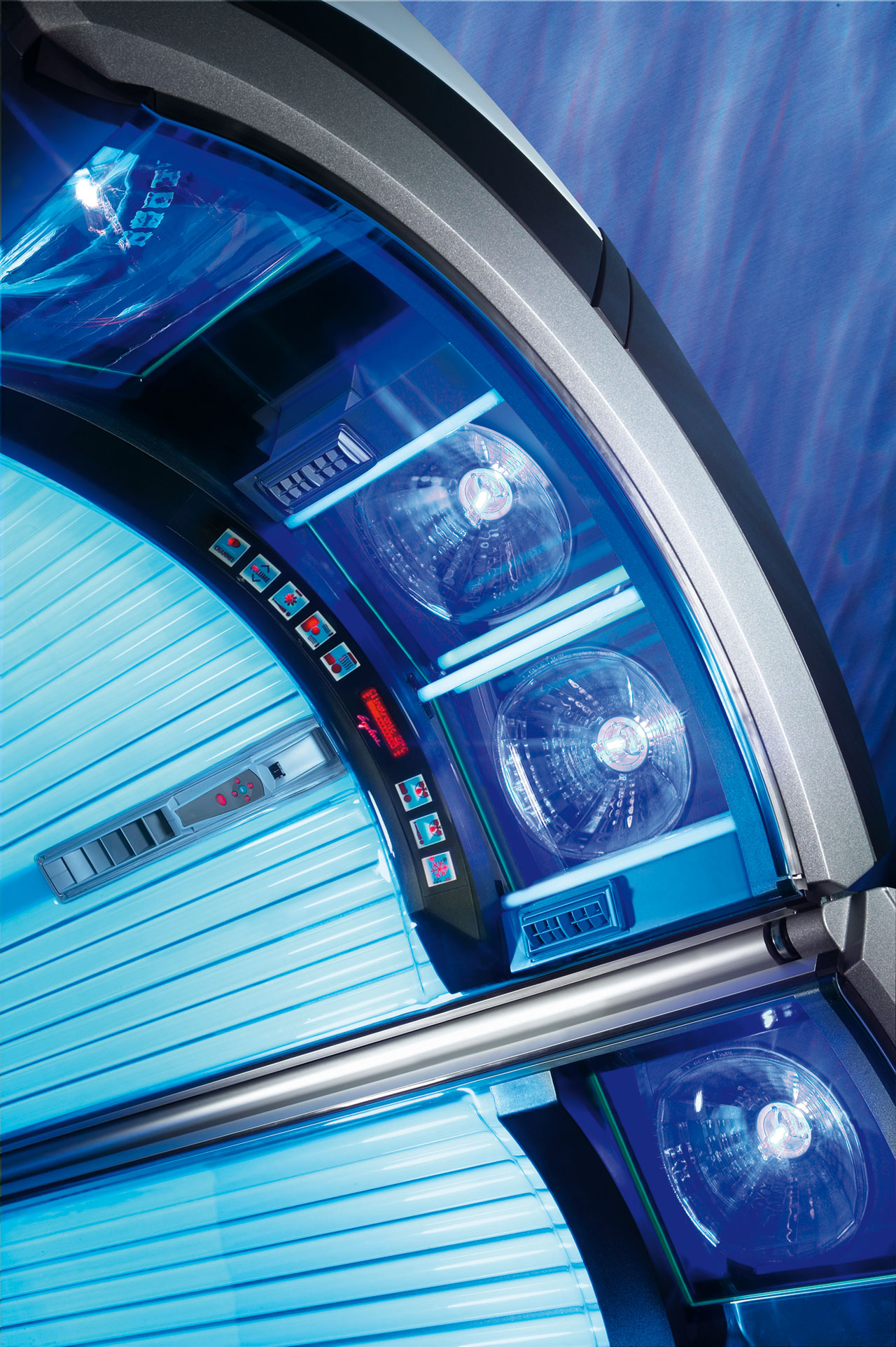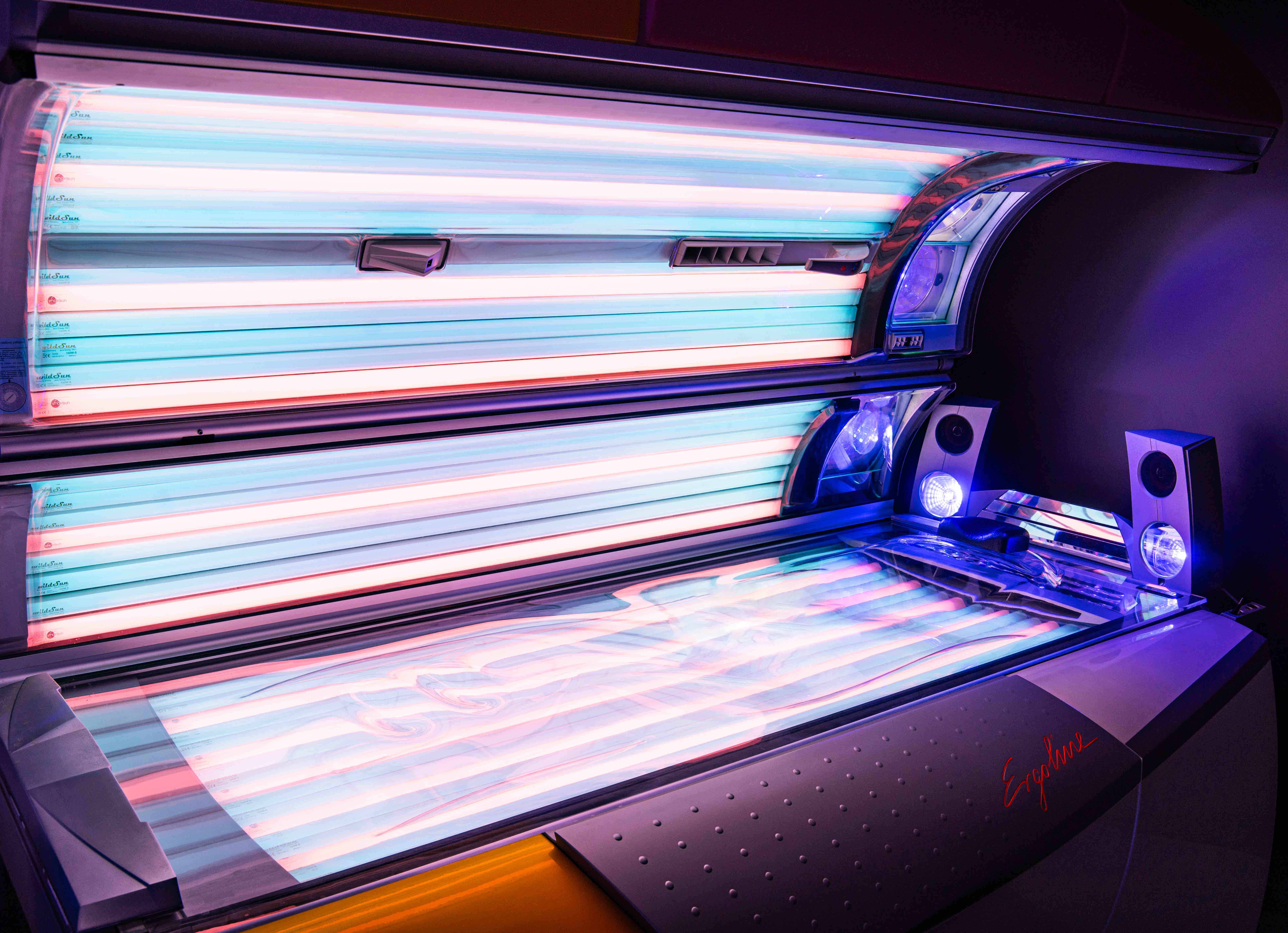 4 modèles de cabines Ergoline haut de gamme, pour tous les niveaux — dès 10€ la séance.